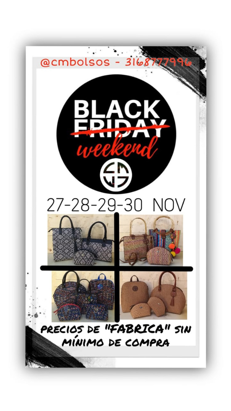 Aprovecha el Black Weeken del 27 al 30 de noviembre con nuestros productos a PRECIOS DE FABRICA sin mínimo de compra, CM Bolsos y Accesorios